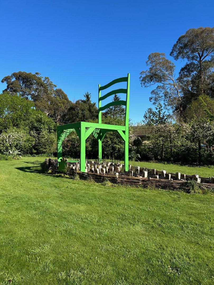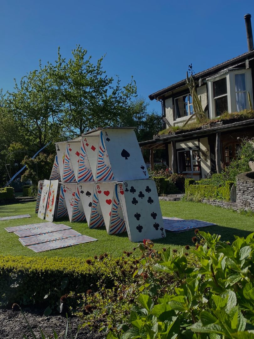 周围环境呢?就像是个艺术游乐场!巨大的椅子、扑克牌和直入天际的梯子。感觉像是走进了一个异想天开的艺术长廊